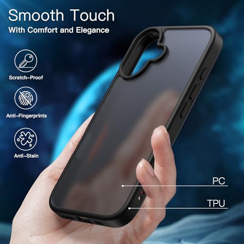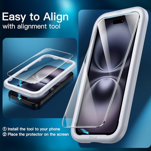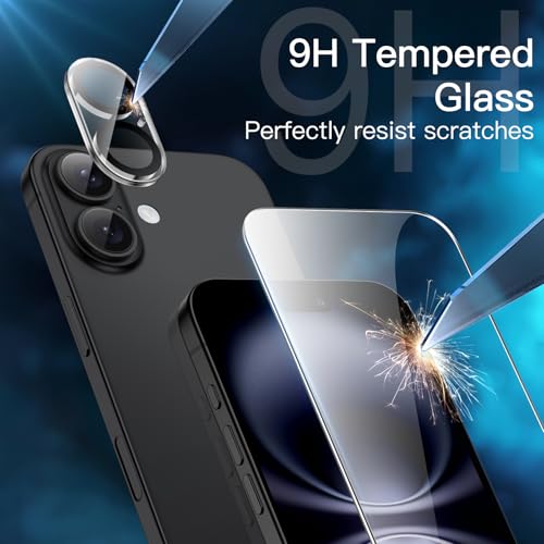 JETech - جيتك حافظة حماية غير لامعة 5 في 1 لموبايل ايفون 16 6.1 بوصة مع قطعتين من واقي شاشة الزجاج المقوى وواقي عدسة الكاميرا غطاء جوال خلفي شفاف مضاد للصدمات اسود TPU
