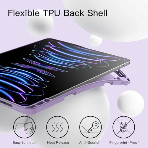 JETech - حافظة حماية من جيتك متوافقة مع آي باد برو 12.9 إنش الجيل 5 و6، غطاء مصنوع من البولي يوريثين باللون البنفسجي الفاتح