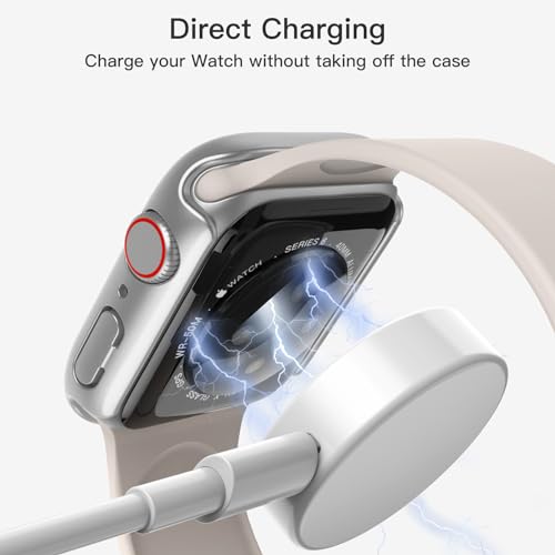 JETech - جراب مع شاشة حماية لساعة آبل (2020 / 2022) SE سلسلة 6 و5 و4 مقاس 40 ملم، جراب حماية شامل، غشاء مدمج من الزجاج المقوى عالي الحساسية، عبوة من قطعتين من جي تك (لون فضي)