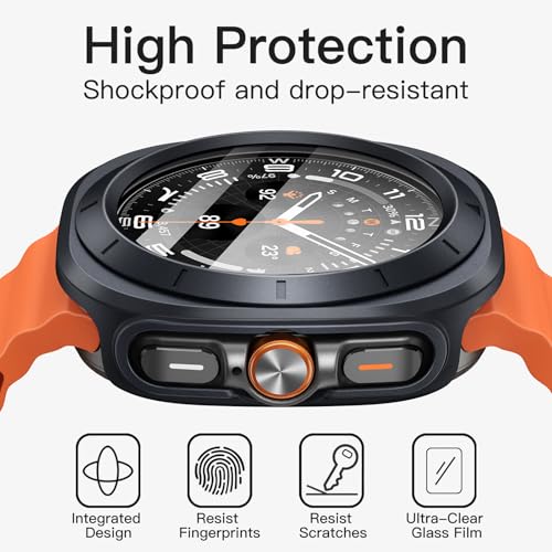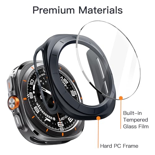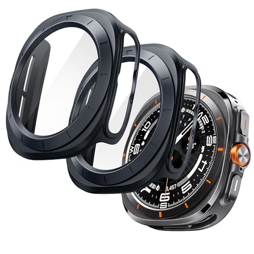 JETech - جيتك جراب مع شاشة حماية لساعة سامسونج جالاكسي الترا 47 ملم، غطاء واقي شامل، غشاء مدمج من الزجاج المقوى عالي الحساسية، عبوة من قطعتين (رمادي تيتانيوم)