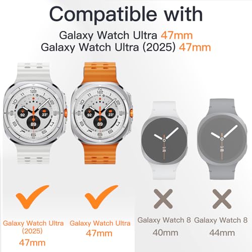 - [ملاءمة مثالية] متوافق مع ساعة سامسونج جالكسي الترا 47 ملم. يرجى التحقق من الجزء الخلفي من جهازك للعثور على موديل الساعة. تتيح لك الفتحات الدقيقة الوصول إلى جميع الميزات والأزرار بسهولة