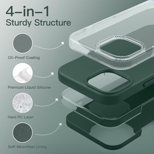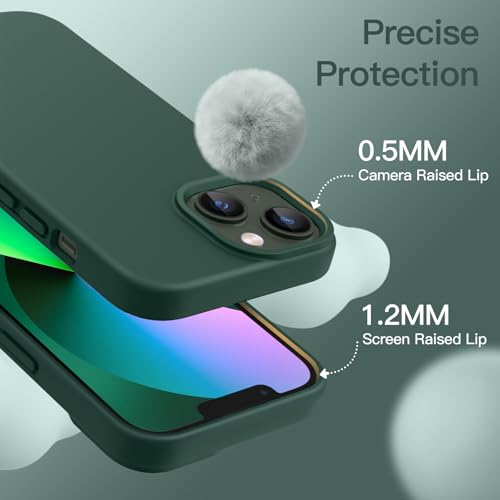 JETech - جراب حماية سيليكون بملمس ناعم مقاوم للصدمات يوفر حماية كاملة لهيكل الموبايل مع بطانة مايكروفايبر لموبايل آيفون 13 6.1 بوصة من جيتك، (أخضر ميدنايت)