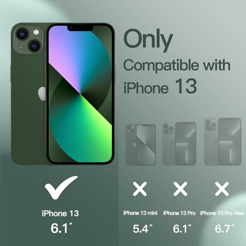 - [التوافق] مصمم خصيصًا لموبايل ايفون 13 مقاس 6.1 بوصة. يمنح موبايلك حماية شاملة. يدعم الشحن اللاسلكي في المنزل. ملاحظة: غير متوافق مع آيفون 13 برو وآيفون 13 برو ماكس وآيفون 13 ميني.