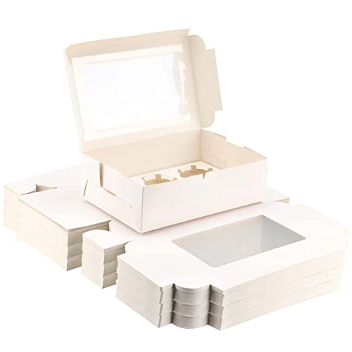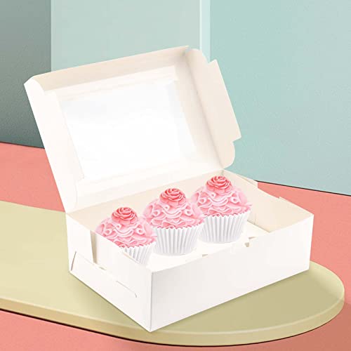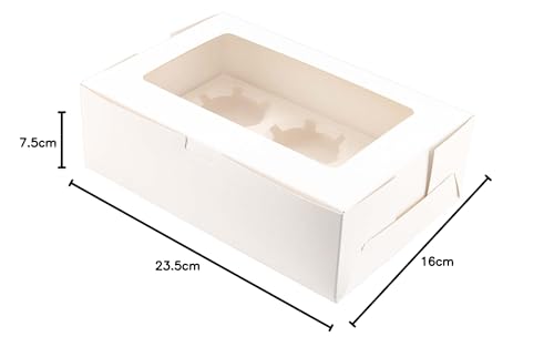 - الحجم والكمية - ستحصل على إجمالي 50 عبوة من صناديق الكب كيك المصنوعة من الورق المقوى بمقاس 9.25 × 6.22 × 2.95 انش/ 23.5 × 15.8 × 7.5 سم. وكل منها مزود بنافذة علوية شفافة لسهولة العرض والمشاهدة.