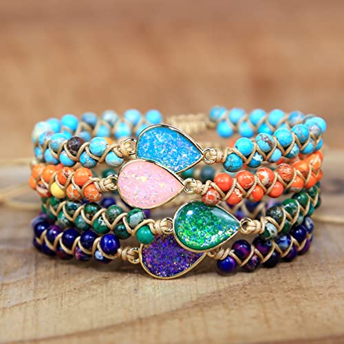 generic - اساور ملتفة بتصميم بوهو مصنوعة يدويا من الجلد الطبيعي من جوبيليت، مجوهرات هدايا للبنات المراهقات، عقيق