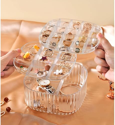Generic - صندوق تخزين المجوهرات - منظم سفر انيق من 3 طبقات للخواتم والارض والقلائد، مثالي للعرض والتخزين، هدية مثالية للفتيات والنساء