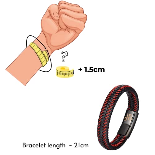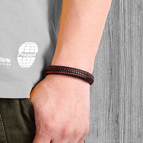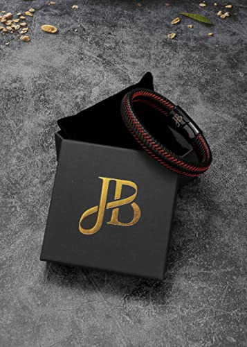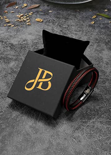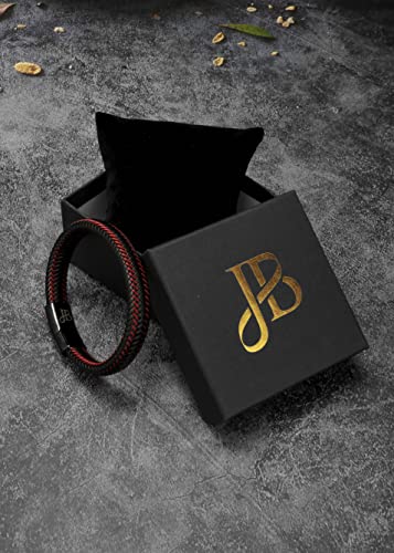 Jewellbox - سوار معصم من الجلد بتصميم مضفر للرجال جويلبوكس مزود بمشبك مغناطيسي الستانلس ستيل معبا في صندوق هدايا يناسب جميع المقاسات لون احمر واسود fit all sizes ستانلس