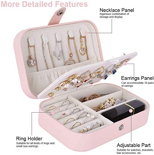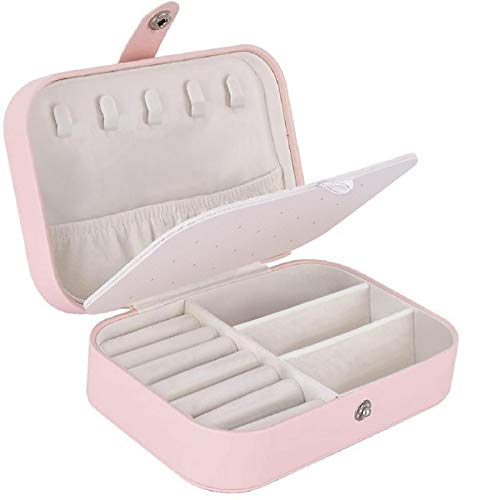 Generic - علبة مجوهرات صغيرة للنساء، مناسبة لحمل الاكسسوارات في السفر - بينك، جلد صناعي، متعدد الالوان