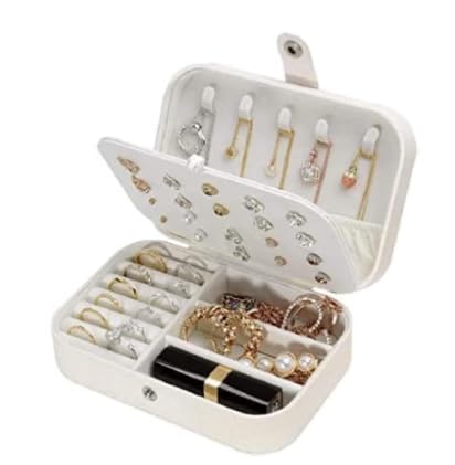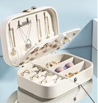 Generic - صندوق تخزين محمول من جلد الصناعي بسوستة لتنظيم المجوهرات مع فواصل للخواتم والحلقان والسلاسل، منظم منزلي