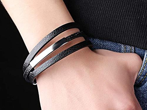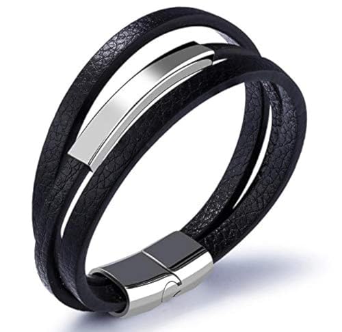 JewelOra - سوار من الجلد البقري الطبيعي لون اسود للرجال جويل اورا موديل MPE-1132