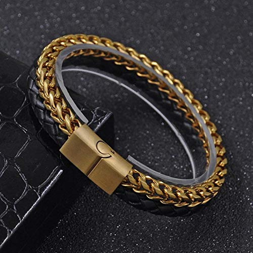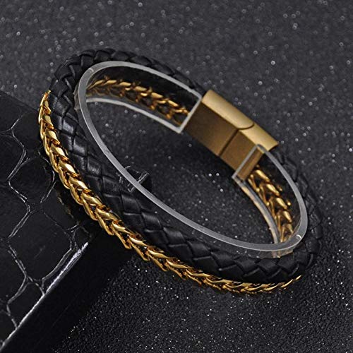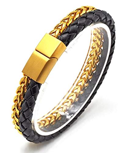 JewelOra - سوار من الجلد البقري الطبيعي لون اسود و ذهبي للرجال من جويل اورا موديل MPE-2024