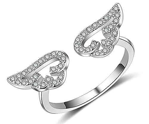 JewelOra - للنساء خاتم فضة مرصع بفصوص الزركون المشرقة قياس قابل للتعديل من جويل اور