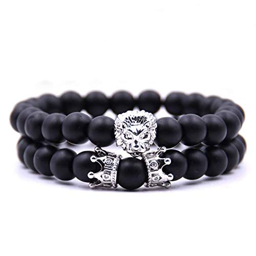 Other - مجوهرات 2 قطع الخرز سوار مجموعة العقيق الأسود الملك تاج الأسد سحر فضي للجنسين