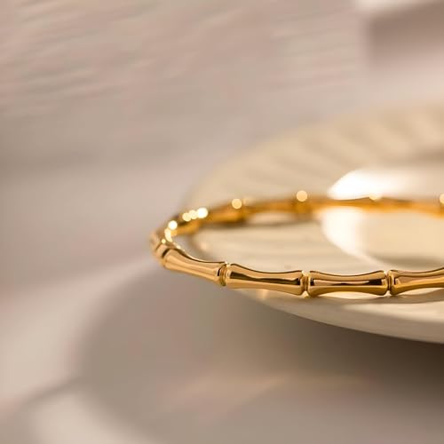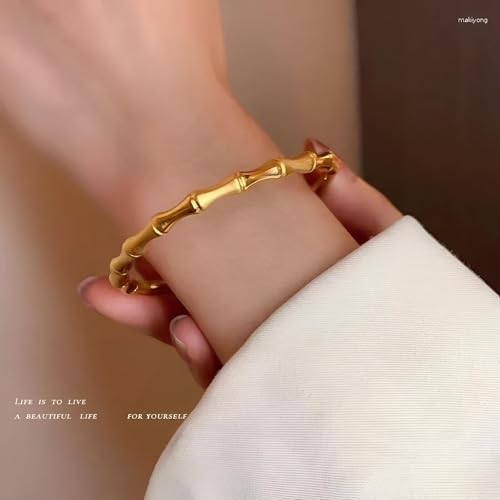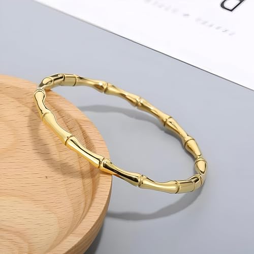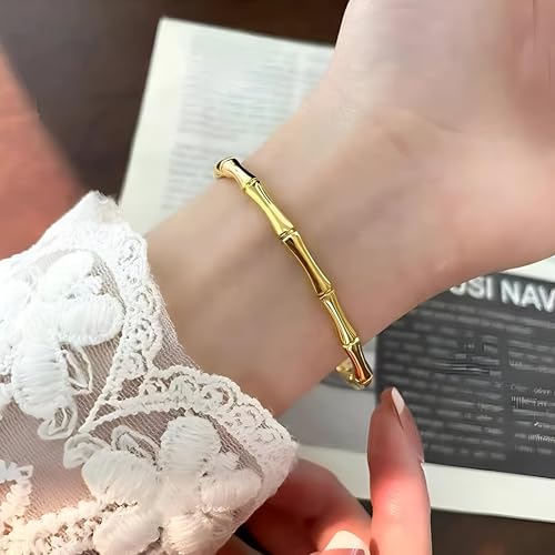 Generic - مجوهرات - سوار عريض انيق بوهو قابل للتعديل بتصميم مفتوح مستوحى من الخيزران باللونين الذهبي والفضي، بسيط وأنيق للنساء