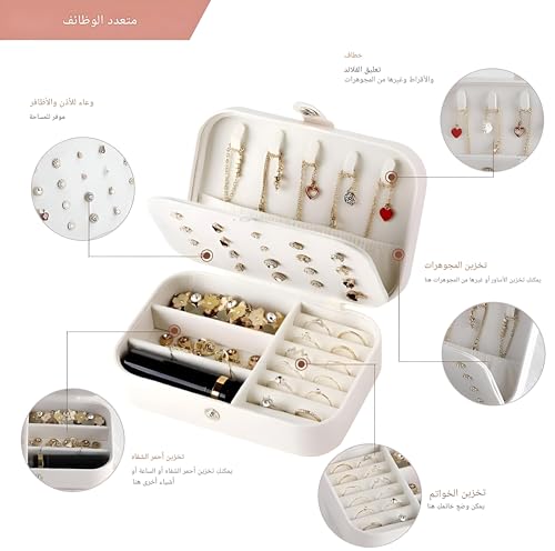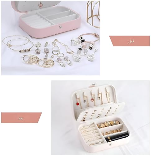 - يتميز منظم المجوهرات هذا بتصميم أنيق من طبقتين يجمع بين سعة تخزين كبيرة وشكل مضغوط، مما يجعله مثاليًا للسفر أو الاستخدام المنزلي مع الحفاظ على مقتنياتك الثمينة آمنة ومنظمة ويسهل الوصول إليها.