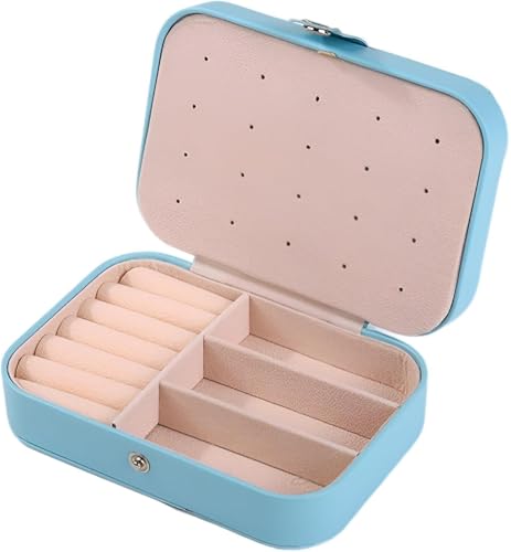 Generic - منظم مجوهرات واكسسوارات - شنطة جلدية متينة بطبقتين للخواتم والاقراط والقلائد والاساور، مصممة لسهولة الوصول اثناء التنقل (ازرق فاتح)
