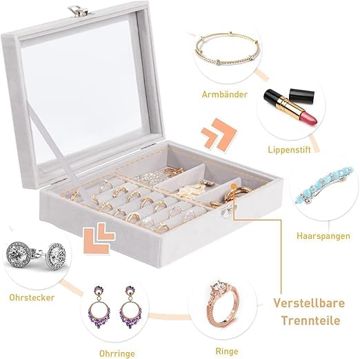 Generic - منظم المجوهرات والإكسسوارات مع غطاء زجاجي، منظم مقسم لعدة خانات، مناسب للسفر
