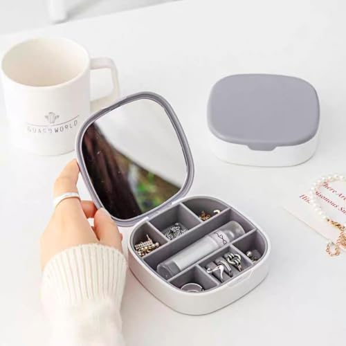 Happy Home - صندوق مجوهرات، صندوق تخزين مجوهرات دوار 360 درجة، مقعد تخزين مجوهرات مراية، صندوق تخزين مقاوم للغبار، صندوق تخزين للسفر للسلاسل والأساور والخواتم والحلقان، (أبيض)