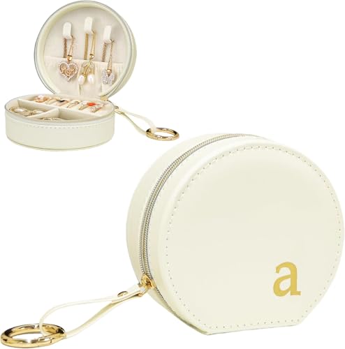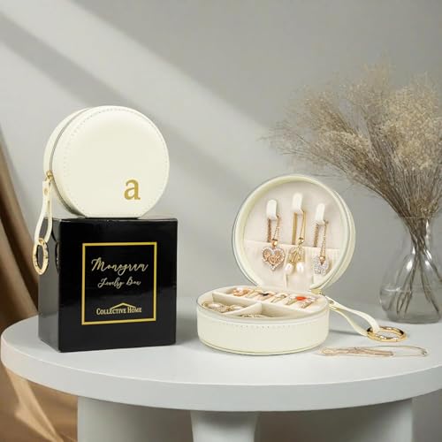 fashion mania - صندوق مجوهرات للسفر - منظم واسع 4.5 انش مع سحاب للإغلاق وسلسلة ذهبية ونقش حروف، مناسب للنساء.
