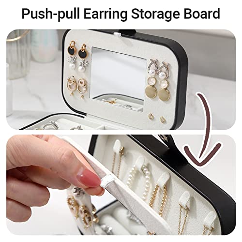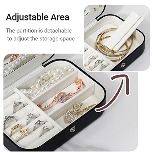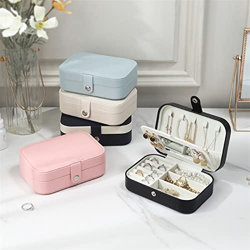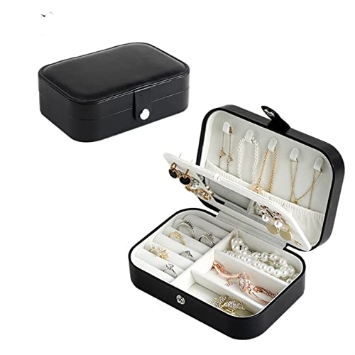 Generic - صندوق مجوهرات صغير للسفر منظم محمول مزدوج الطبقات من جلد البولي يوريثين مناسب لتنظيم الحلقان هدايا للفتيات اوزيو اللون: ستايل 4 - اسود
