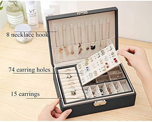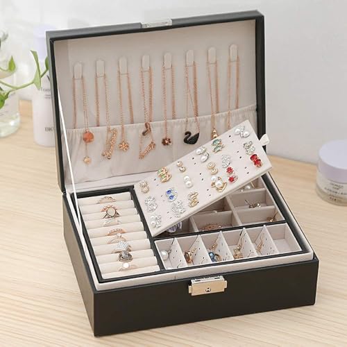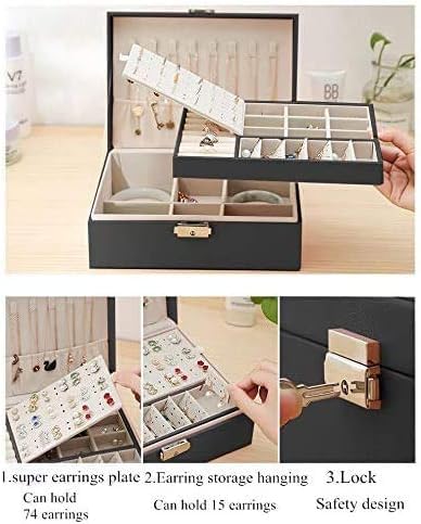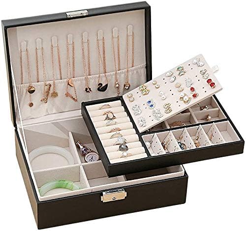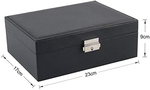 Generic - منظم صندوق مجوهرات ، حافظة من طبقتين جلد البولي يوريثين ببطانة ناعمة مع قفل للخواتم والاقراط والقلائد والاساور، اسود للنساء والفتيات