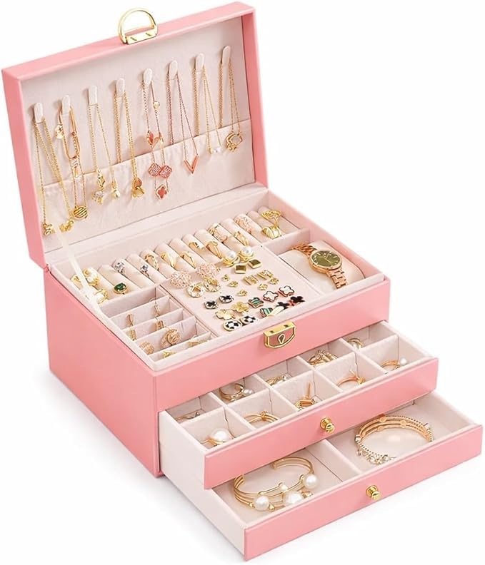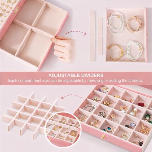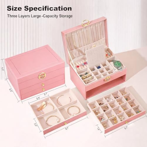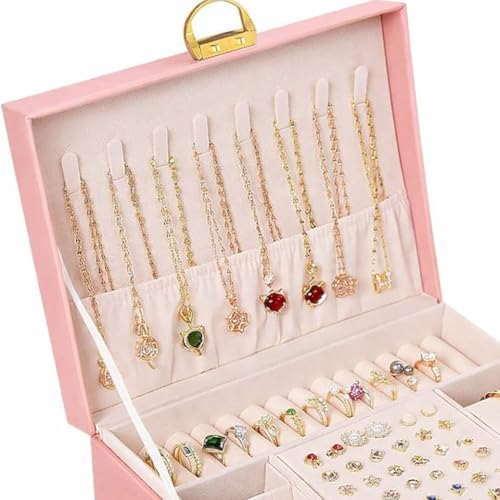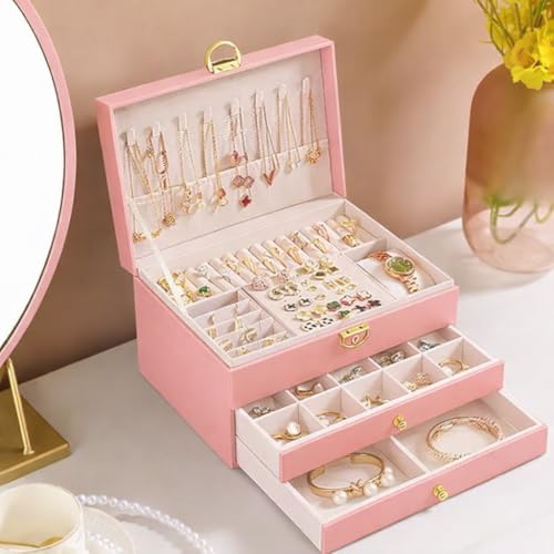 Generic - منظم صندوق مجوهرات، حقيبة سفر قابلة للقفل من 3 طبقات مع مساحات تخزين للاقراط والخواتم والاساور والساعات وتخزين الاكسسوارات للنساء والفتيات، X-559 (بينك)
