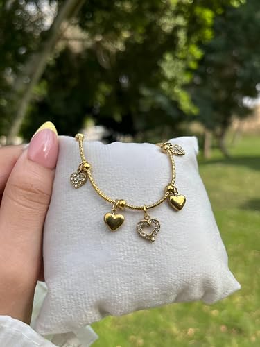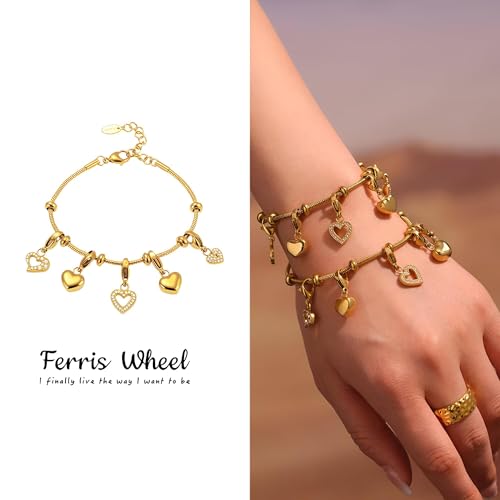Generic - سلسلة مجوهرات - سلسلة بدلاية عصرية من حجر الراين الكريستالي مع عجلة فيريس ودلاية قلب ذهبية، اكسسوار رومانسي فريد للنساء