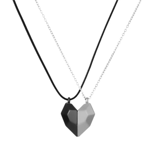 Generic - قلادات زوجين على شكل قلب من المجوهرات زوج من سلاسل الترقوة المغناطيسية المصنوعة من حجر التمني قلادات زوجين على شكل قلب