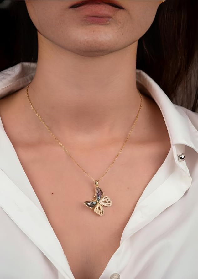 Generic - قلادة بدلاية على شكل فراشة مجوفة من الزركون بتصميم مبتكر مبتكر للنساء والفتيات