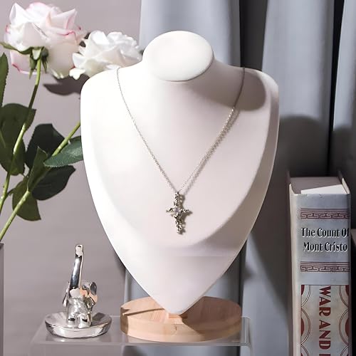 Generic - صندوق عرض المجوهرات - حامل مانيكان ثلاثي الابعاد مزخرف مخملي مع مساحة تخزين مخفية للقلائد واكسسوارات السلاسل (ابيض، S)