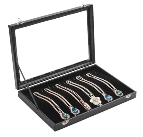 Generic - صندوق عرض مجوهرات بغطاء زجاجي شفاف، منظم قلادات مع بطانة مخملية سوداء، حافظة تخزين إكسسوارات