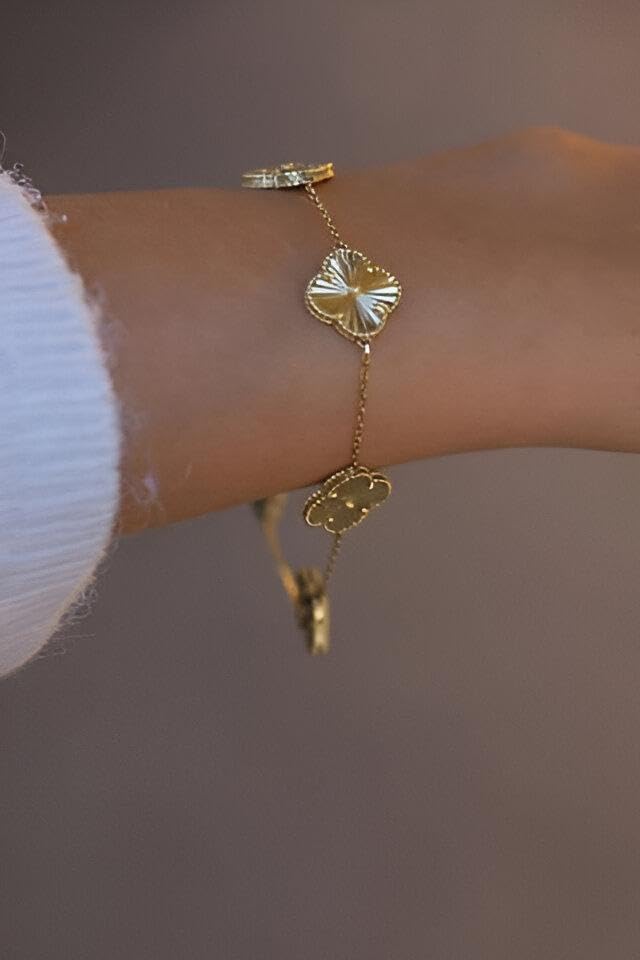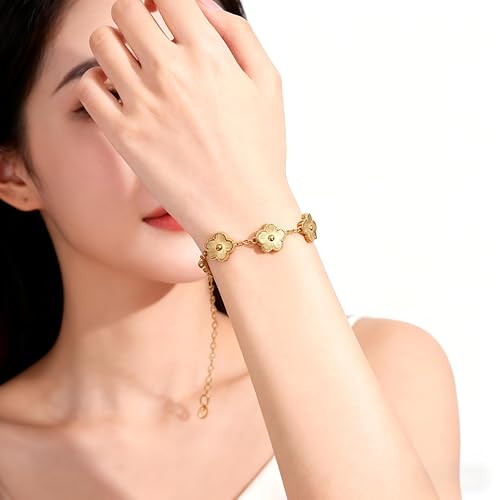 Generic - مجوهرات للنساء - سوار سلسلة زهور مطلي بالذهب، تفاصيل زهور فنية، مقاس قابل للتعديل، اكسسوار عصري، هدية مثالية للمناسبات الخاصة