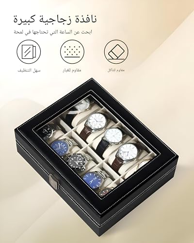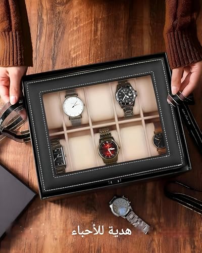 - يوفر صندوق الساعة المكون من 10 فتحات حل تخزين متطور لكل من ساعات الرجال والنساء، حيث يجمع بين العملية والتصميم الأنيق. يوفر مساحة واسعة لتنظيم وحماية مجموعة كبيرة من الساعات بشكل أنيق، مما يجعله ملحقًا مثاليًا لمحبي الساعات أو أي شخص يتطلع إلى الحفاظ على ساعاته في حالة ممتازة ويمكن الوصول إليها بسهولة.