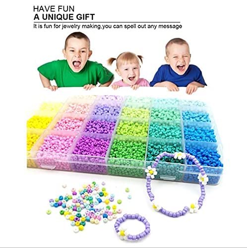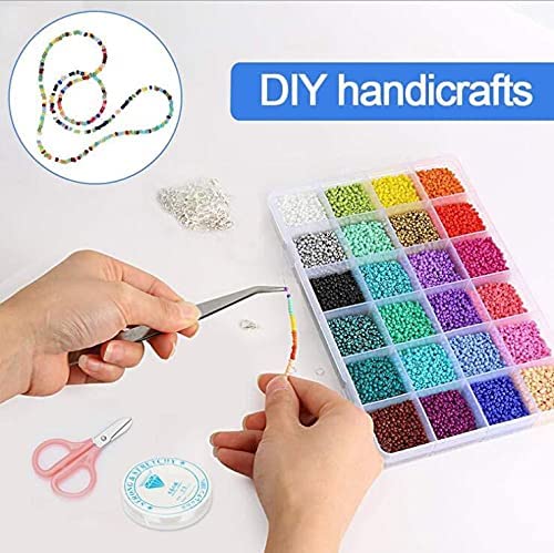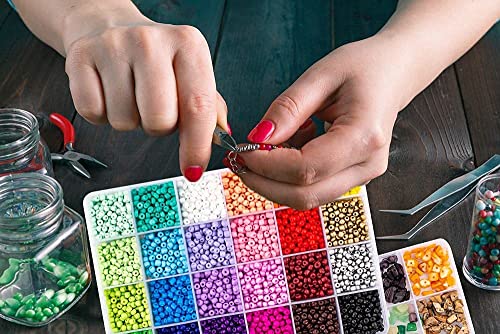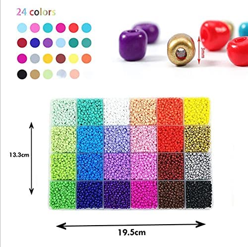 - [المقاس والألوان الجميلة] - قطر الخرز 3 ملم، اخترنا 24 نوعًا من الألوان العصرية المختلفة لك، كل لون في مساحة صغيرة حيث يتم تخزين جميع الخرز والحلي في صندوق بلاستيكي شبكي، لذلك لن تختلط مع بعضها