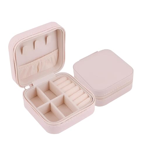 Generic - صندوق منظم مجوهرات متعدد الاستخدامات للسفر مع غطاء شفاف ومقصورات متعددة ومقاومة للصدمات الخارجية لجميع احتياجاتك من المجوهرات (بينك)