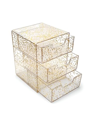 - يتميز منظم لارا الذهبي الفاخر بثلاثة أدراج واسعة بتصميم أنيق يكمل أي ديكور، ما يوفر مساحة تخزين كبيرة للأشياء الصغيرة. حجمه الصغير 10 × 13 سم يجعل من السهل وضعها في أي مكان حول منزلك أو مكتبك، ما يعزز التنظيم والأناقة في نفس الوقت.