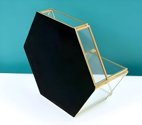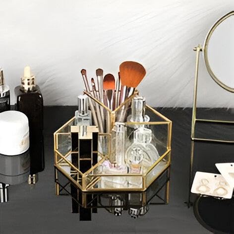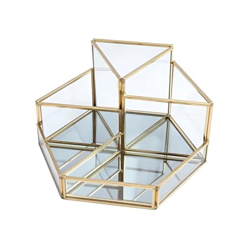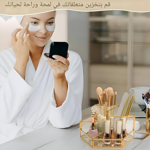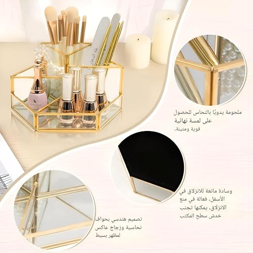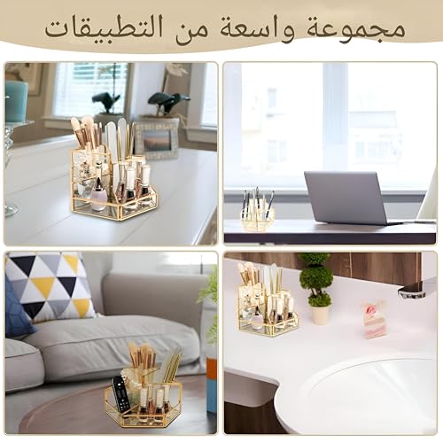 Generic - منظم مجوهرات - زجاج سداسي انيق وتصميم معدني لتخزين مستحضرات التجميل مع حوامل فرش ولمسة نهائية زخرفية، مثالي لترتيب المكياج والاكسسوارات