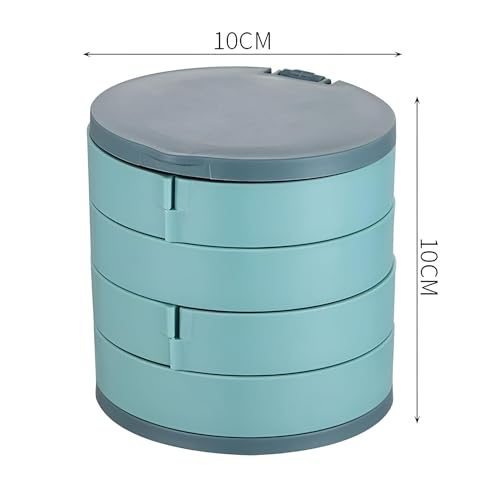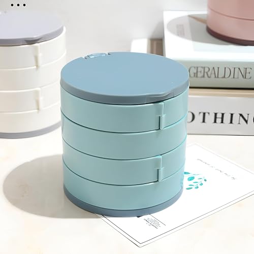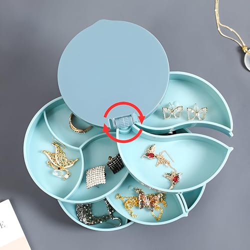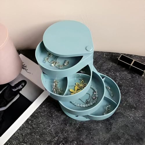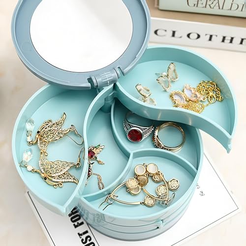 Generic - منظم مجوهرات - حافظة دوارة متعددة الطوابق مع مرآة، تخزين موفر للمساحة للخواتم والسلاسل والحلقان بتصميم ازرق للاستخدام المنزلي المريح
