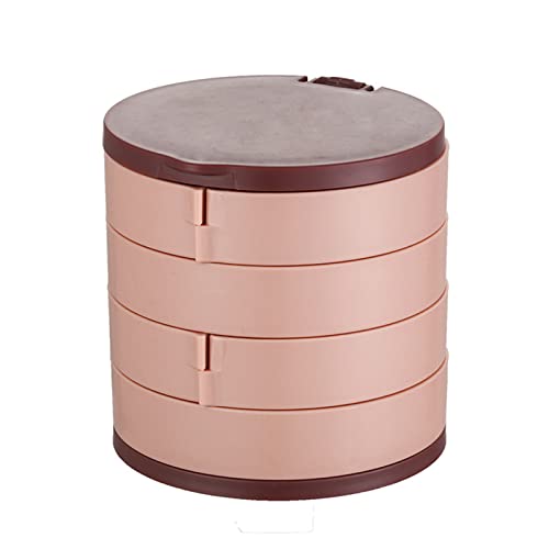 WMM - صندوق تخزين وعلبة مجوهرات بتصميم دوار صغير للسفر مزود بمرآة وحامل حلقان من 4 طبقات مع غطاء للحلقان والسلاسل والاساور للنساء، بلاستيك، زهري، من دابليو ام ام