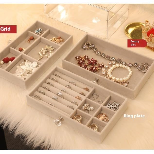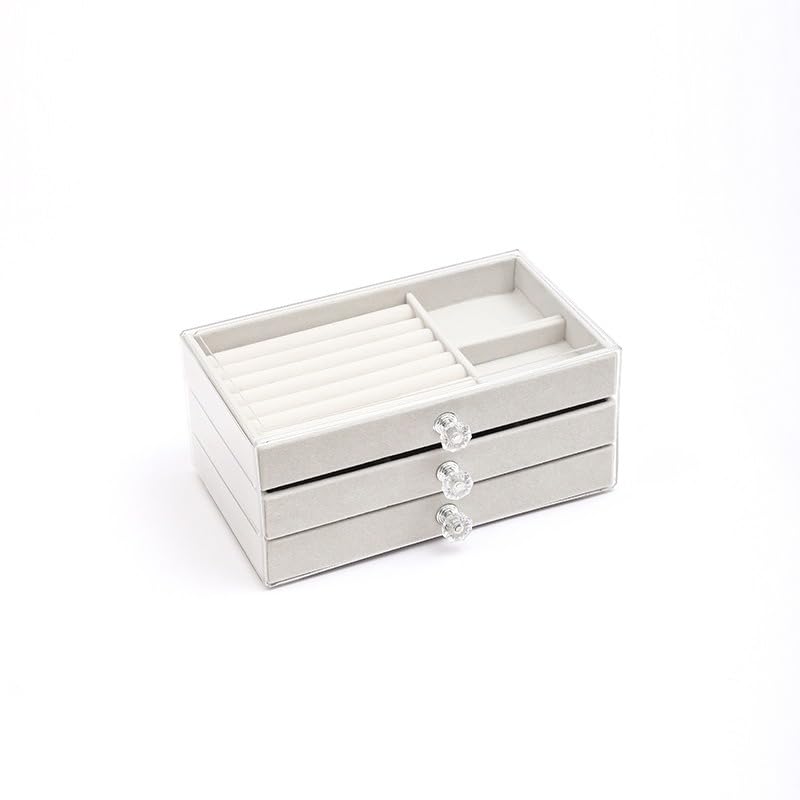 Generic - صندوق منظم مجوهرات للسفر من 3 طبقات للنساء والفتيات، صندوق تخزين مجوهرات متعدد الوظائف للاقراط والاساور والخواتم، مقاوم للغبار، تصميم عصري، X-196 (بيج)