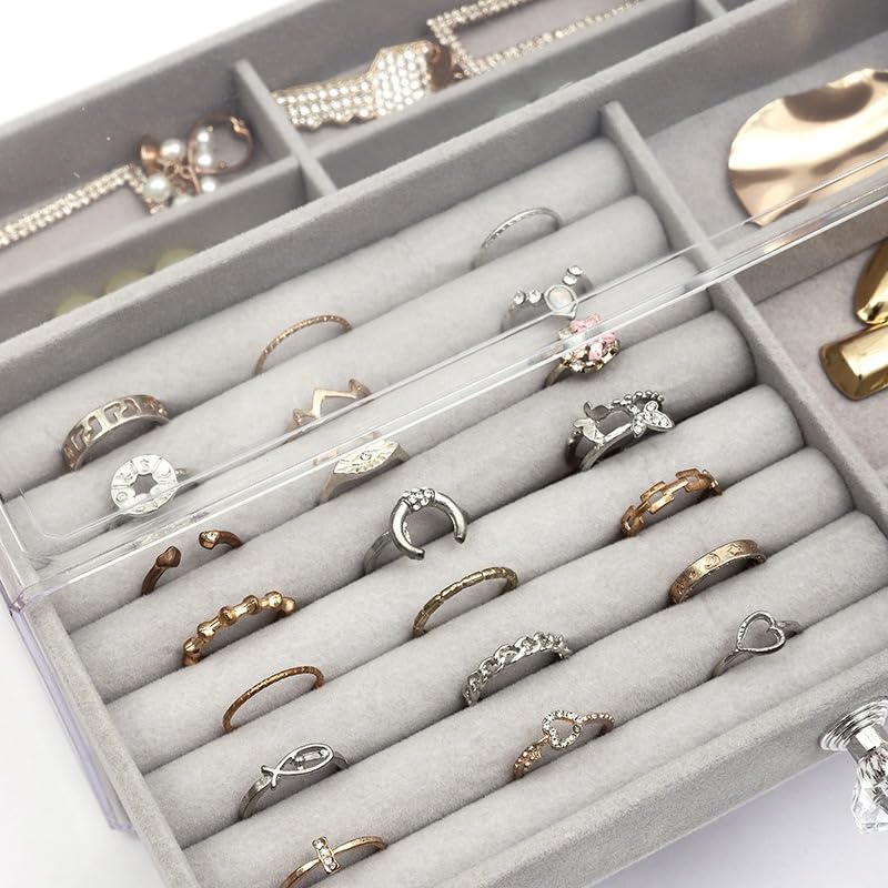 - 3 طبقات، مكان واحد نظيف: يحافظ منظم المجوهرات هذا على الأقراط والخواتم والأساور منفصلة عبر 3 طبقات، لذلك تتوقف عن الحفر في الأدراج وتبدأ في الاستعداد في دقائق.