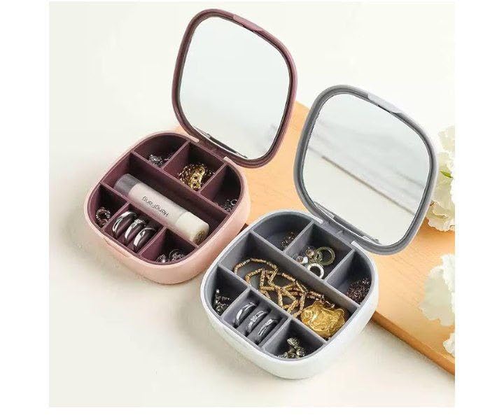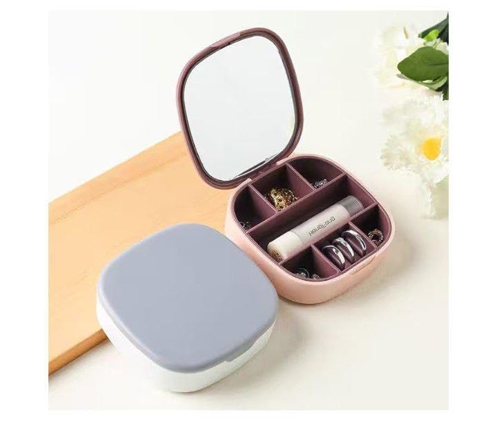 Generic - منظم مجوهرات مع مراة شفافة - صندوق تخزين اكسسوارات صغير محمول، حافظة مجوهرات انيقة للسفر لشنطة اليد والاستخدام اليومي (قطعتان)