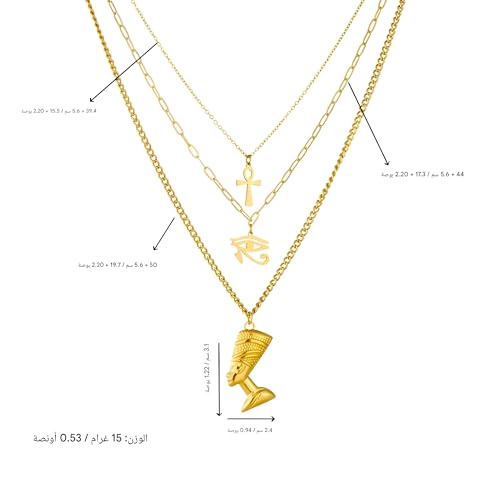 Generic - مجموعة مجوهرات - قلادة مصرية، عين حورس، دلايات نفرتيتي على سلسلة من 3 طبقات للاكسسوارات الثقافية المهيبة