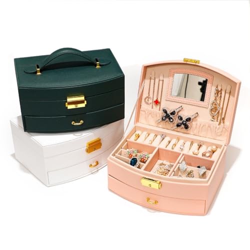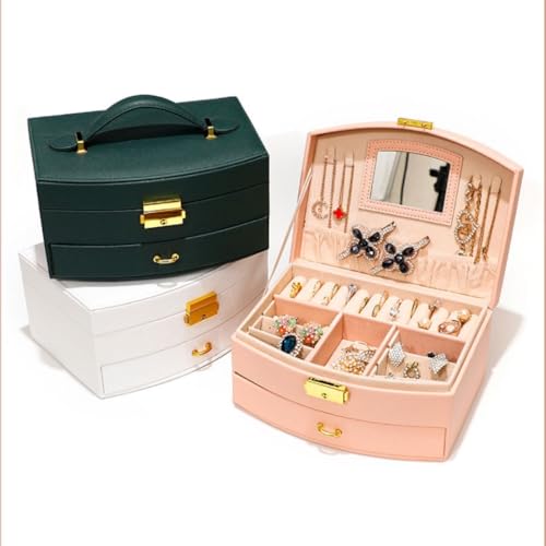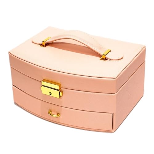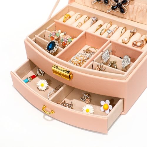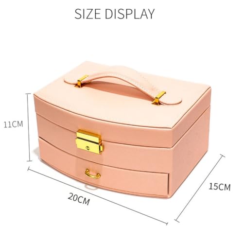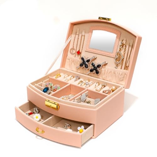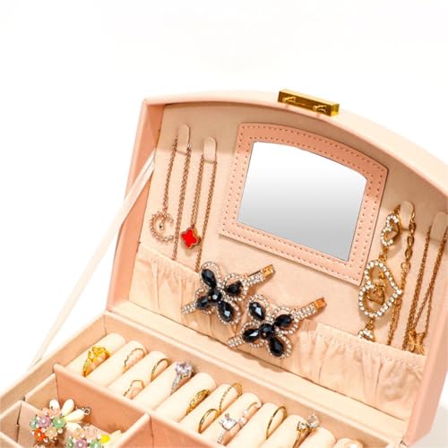 YUANXIAOHU - صندوق تخزين مجوهرات رائع مزدوج الطبقات على شكل مروحة، صندوق مجوهرات للخواتم والاقراط والقلادة، صندوق تخزين مجوهرات متعدد الوظائف (بينك)