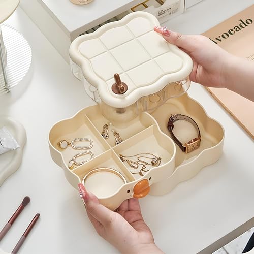 Generic - صندوق تخزين مجوهرات دوار مع صينية بغطاء، سهل الاستخدام والصيانة، بفواصل متعددة جاهزة للسفر للساعات والأساور والسلاسل والبودرة (قطعة واحدة)