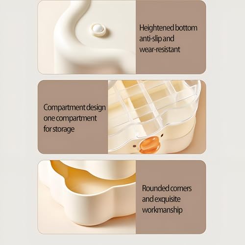 - يتميز صندوق تخزين المجوهرات هذا بتصميم كرتوني فريد يضيف لمسة مرحة إلى أي سطح مكتب أو مساحة زينة، مما يجعله ليس عمليًا فحسب، بل أيضًا قطعة زخرفية لافتة للنظر للفتيات والنساء اللواتي يقدرن الجمال المرح.