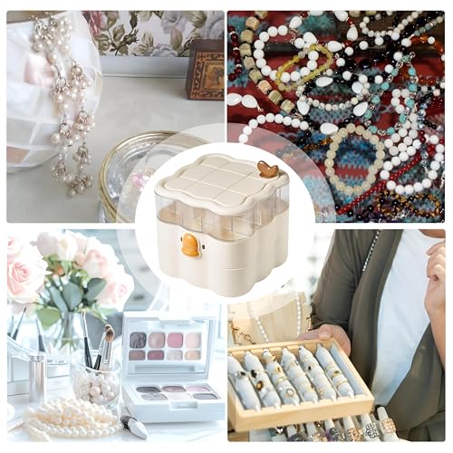 - مزود بصينية دوارة من ثلاث طبقات، يدور كل قسم بسلاسة لمنح سهولة الوصول إلى جميع الأقسام، مما يبسط عملية البحث عن الخواتم أو الأقراط أو القلائد، وتحويل تنظيم المجوهرات إلى تجربة ممتعة.