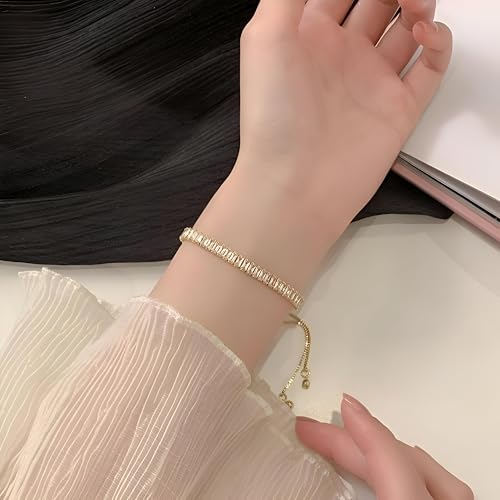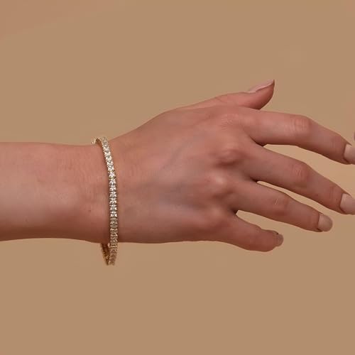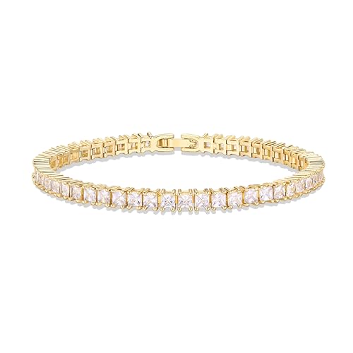 Generic - مجوهرات - سوار تنس مذهل مطلي بالذهب مرصع بالزركونيا المكعب الكريستالي، نمط قص الاميرة، مثالي لاكسسوارات الموضة النسائية الأنيقة