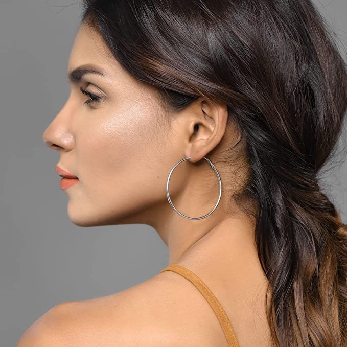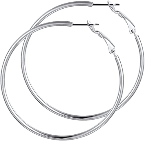 Generic - حلقان دائرية كبيرة، مجوهرات حلقية للنساء (لون فضي), one size, ستانلس ستيل, بدون أحجار كريمة