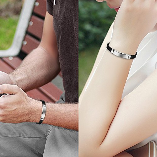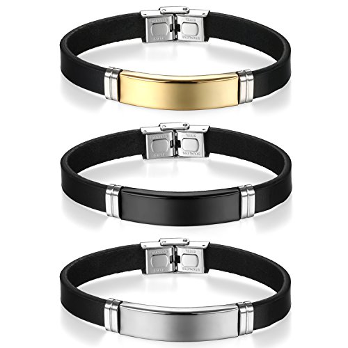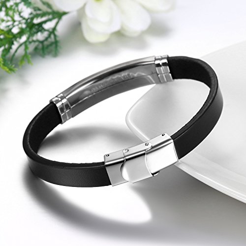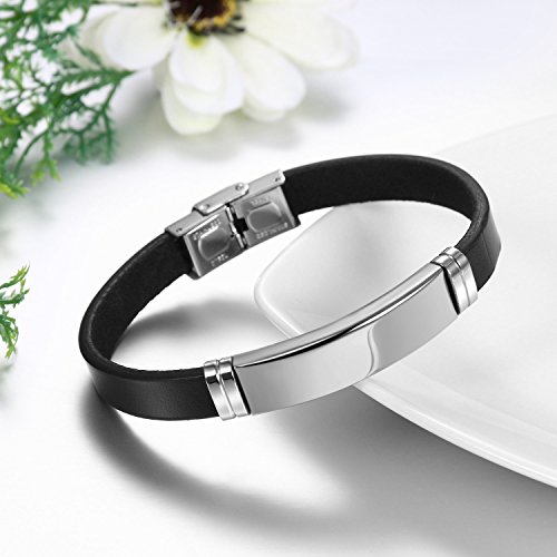 JewelryWe - سوار جلد فاخر مزين بقطع ستانلس ستيل مصقولة عالية اللمعان قابلة للنقش والحفر بنمط شخصي حسب الطلب للرجال والنساء من جولري وي, 22 centimeters, جلد